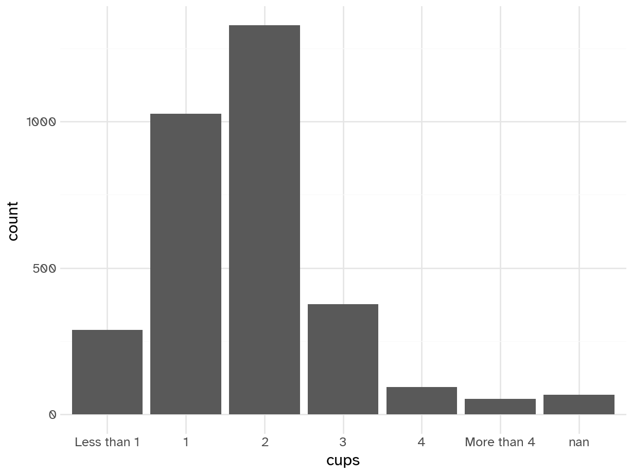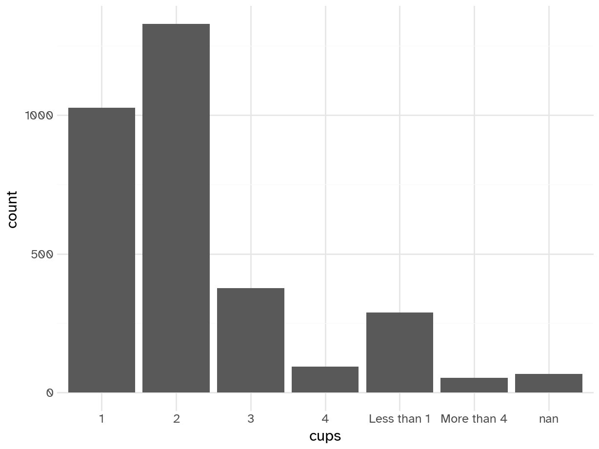 | cups | character | How many cups of coffee do you typically drink per day? |