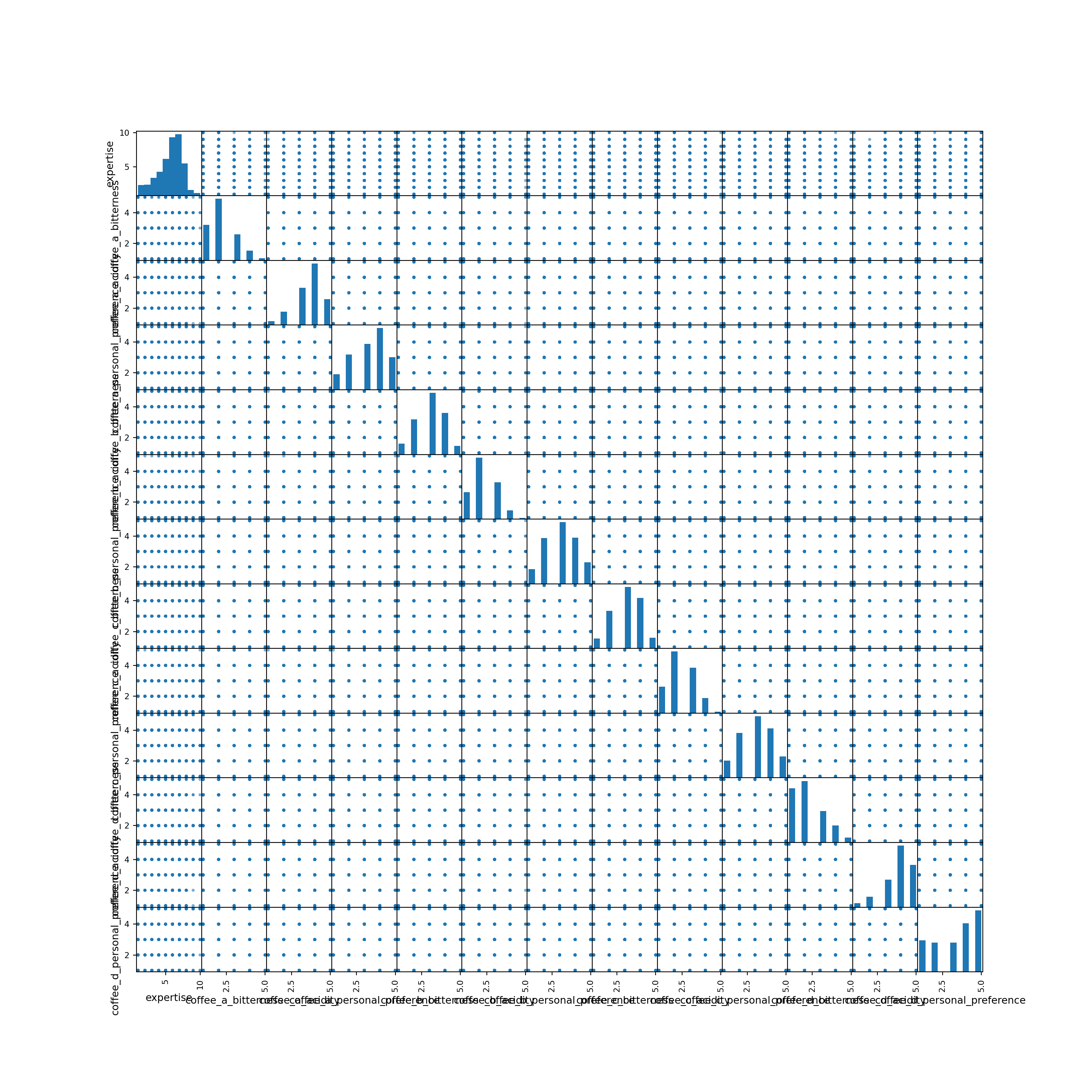 | expertise | numeric | Lastly, how would you rate your own coffee expertise? |