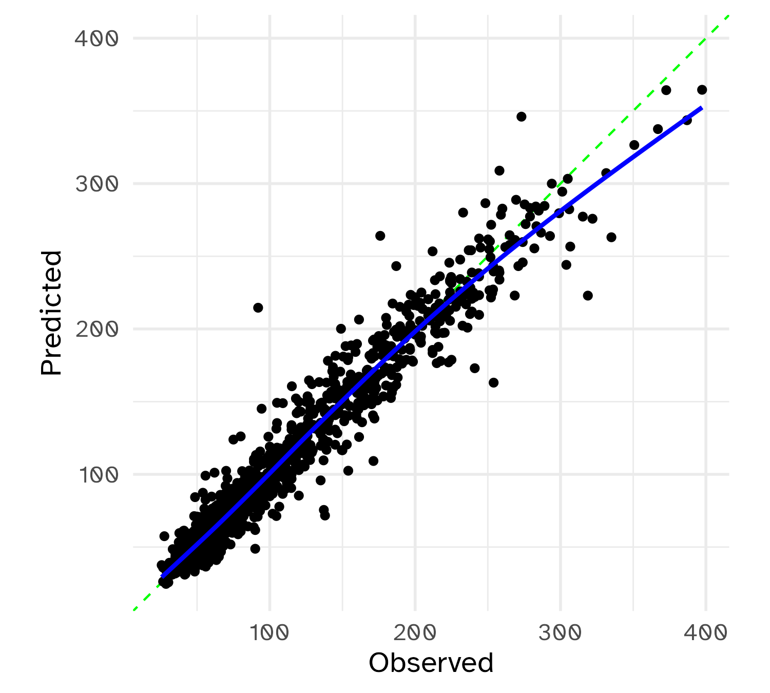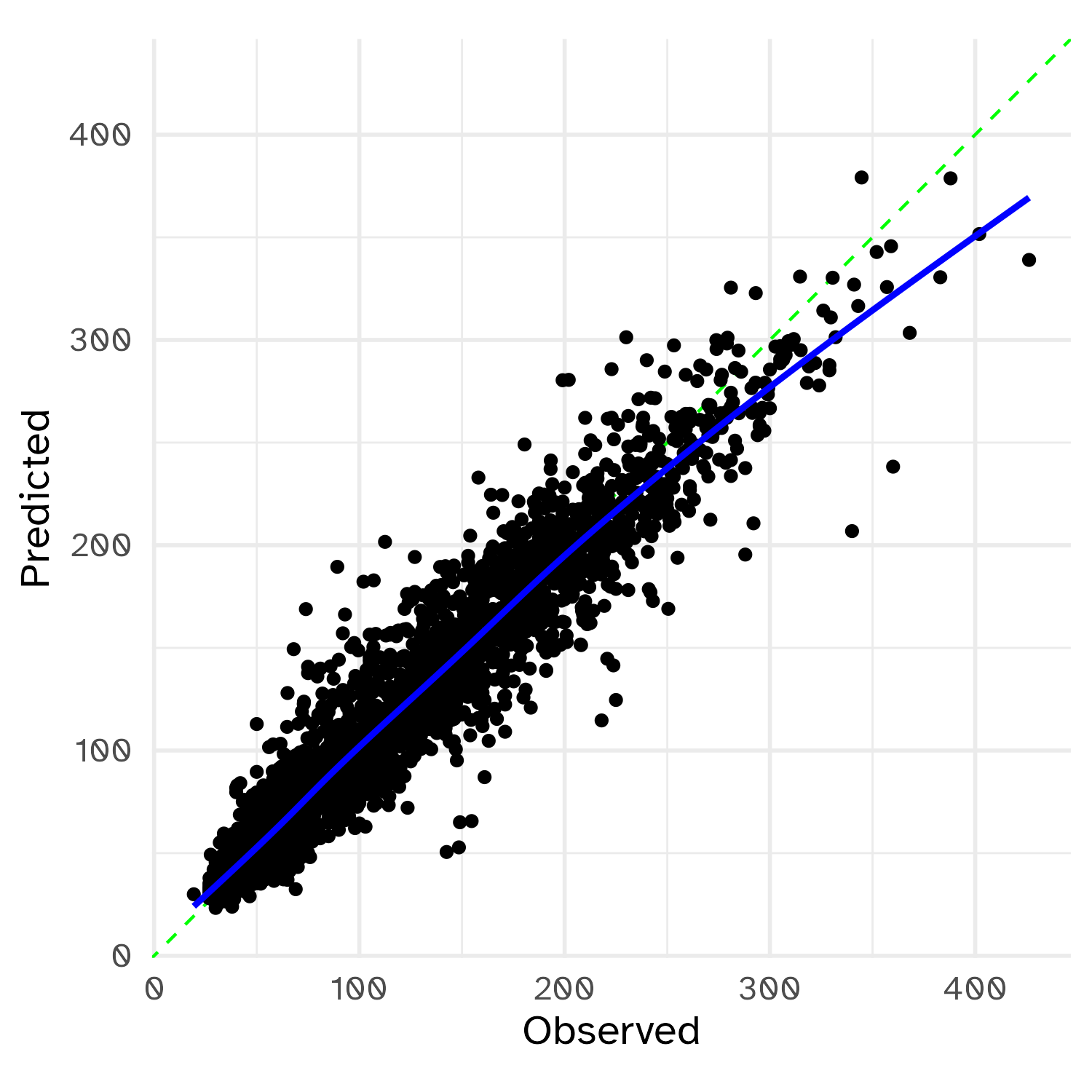 The random forest model was not great. The RMSE was much lower than the linear regression model in the previous exercise.